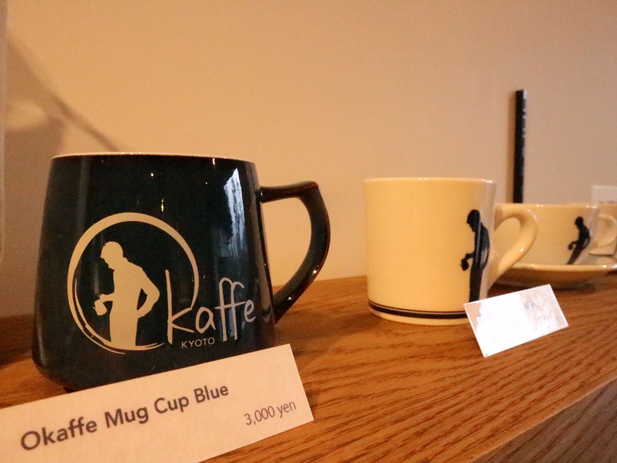 コーヒー豆のほか、岡田さんのシルエットが大きくあしらわれた、オリジナルデザインのコーヒーカップやTシャツなどの販売もあります。