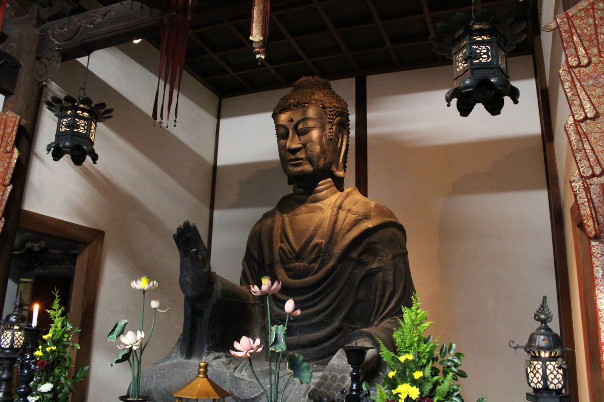 飛鳥寺は596年、蘇我馬子によって建立された日本初の本格的伽藍を備えた仏教寺院。「釈迦如来坐像」は、飛鳥時代に日本に渡来してきた鞍作鳥(止利仏師)によって造られた、現存する日本最古の釈迦如来坐像です。
