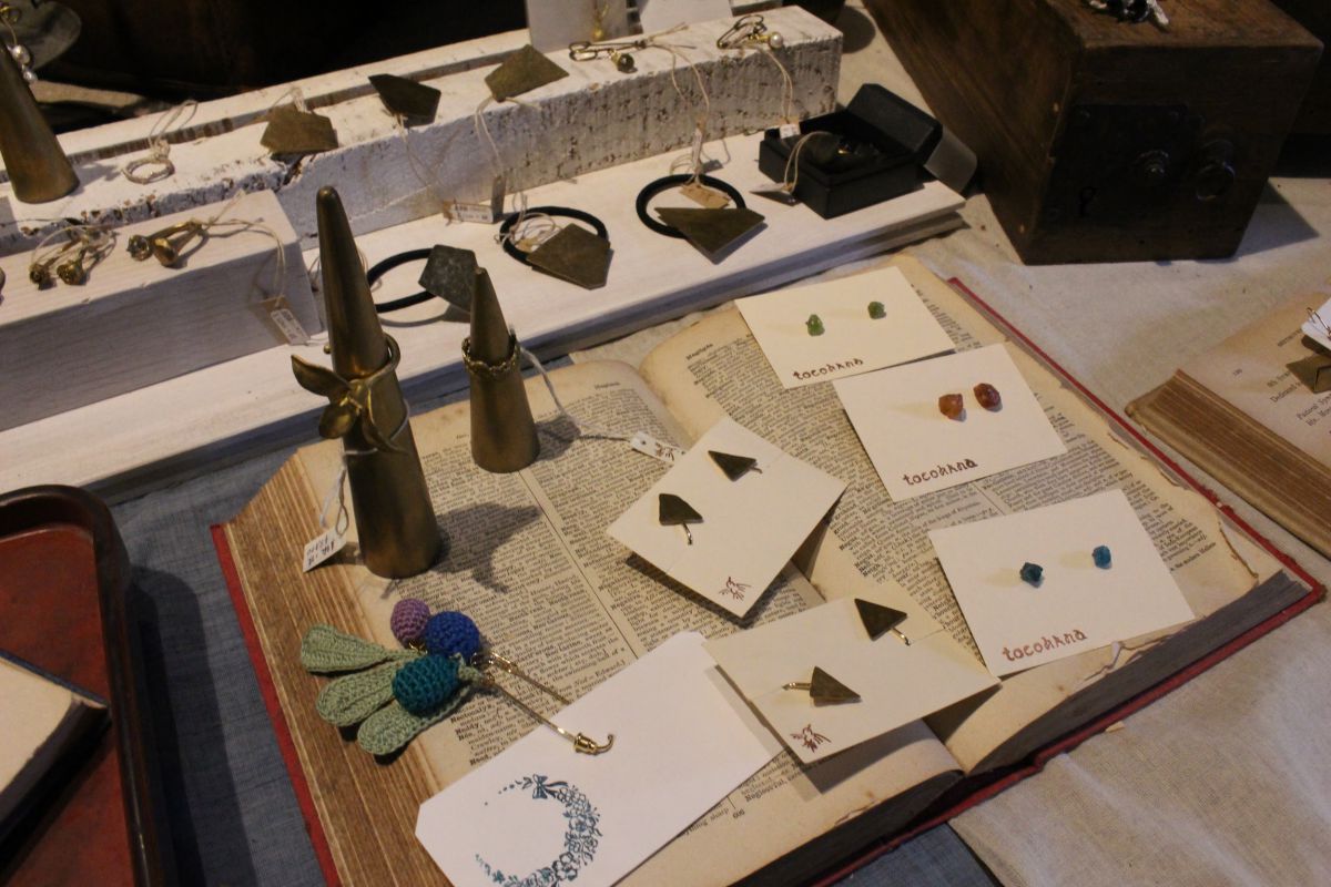 ちなみに先ほどののれんをくぐると、おみやげコーナーが広がっています。こちらは地元のデザイナーさんが作られたアクセサリー類。オシャレじゃん……。