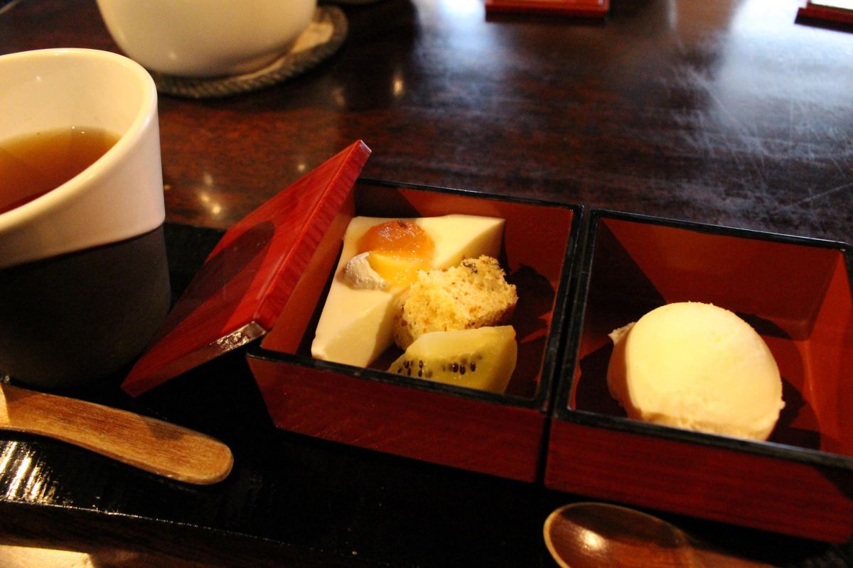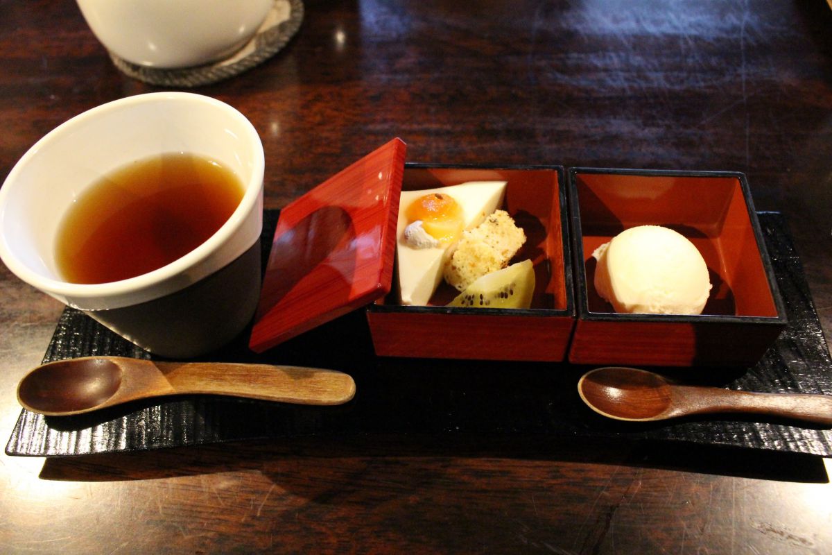 そして、デザートがちっちゃなお重に入っているのも、なんというか「和!」な感じがしていいですね。このお重を順番に開けていくのも、「ことだまランチ」の醍醐味。最初は「なんで紅茶と不思議な箱の間がこんなに空いてるんだ?」という間抜けな勘違いをしていたのですが、開けてみて納得、並べてみて納得。これはぱかぱか開けたくなりますわ……。ランチの最後にスイーツを楽しめるのも、忘れがちですがとってもうれしいところ!