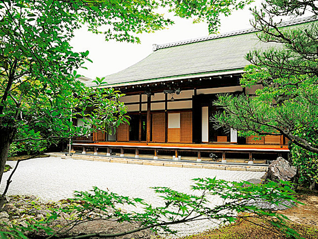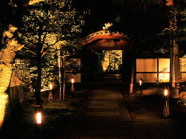 「高台寺」の塔頭で、趣の異なる2つの庭や、襖絵などが見どころのひとつ。春と秋には夜間のライトアップが行われ、美しい桜や紅葉を楽しむことができます。このライトアップ期間のもうひとつの楽しみが「禅寺体験ことはじめ」。写経、写仏、坐禅、抹茶、卓上白砂線引など、禅宗のプチ修行を無料(抹茶のみ有料)で体験できてしまうのです。予約も不要なので気軽に参加できるのがうれしいところ。秋の夜長は、心静かに禅宗の教えに触れてみるのはいかが?