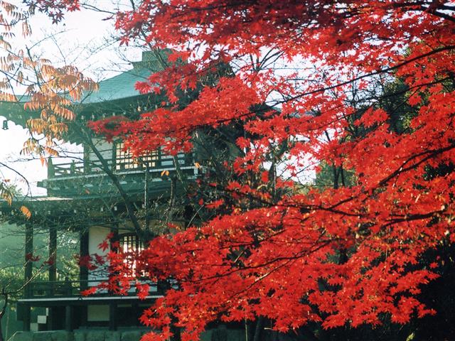 紅葉越しの観音堂がベストショット!静かな秋の訪れを感じる