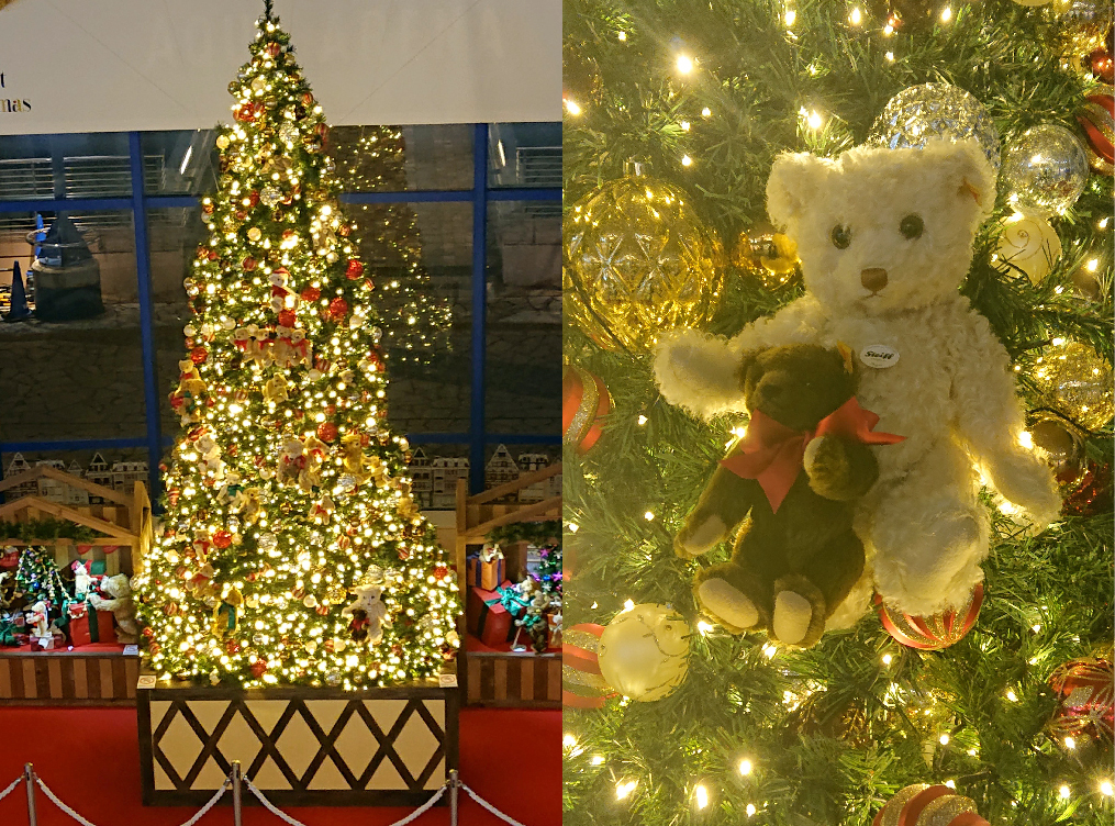 「アクアシティお台場」では、3Fのアクアアリーナにて約5000球の電飾が輝くツリーを展示!今年のツリーは高さ約6m、ドイツをテーマに、世界最古のぬいぐるみメーカー「シュタイフ社」のテディベア約100体が華やかに彩ります。ドイツ生まれのスイーツや紅茶などのグルメ、テディベア、雑貨類も販売している「ドイツマーケット グルメ&キャラクターグッズ」も2019年12月25日まで開催中です。