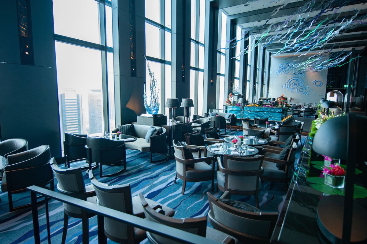 まずご紹介するのは、ホテル最上階で優雅にくつろぐティータイムがおすすめのサウンドステージ&ダイニング「アーティスト カフェ」。洗練された店内空間と目の前に広がる開放的な視界が、非日常感を盛り上げてくれます。