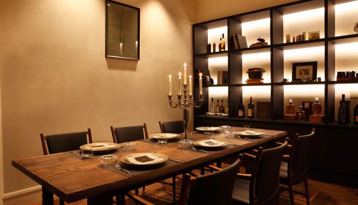 イタリア各地の名店で研鑽を積んだ八木康介氏オーナーシェフ。旧山手通り沿いのビルの地下に佇む、大人の隠れ家的なリストランテです。イタリアの邸宅のようなメインダイニングで、本格的なイタリア料理を賞味できます。