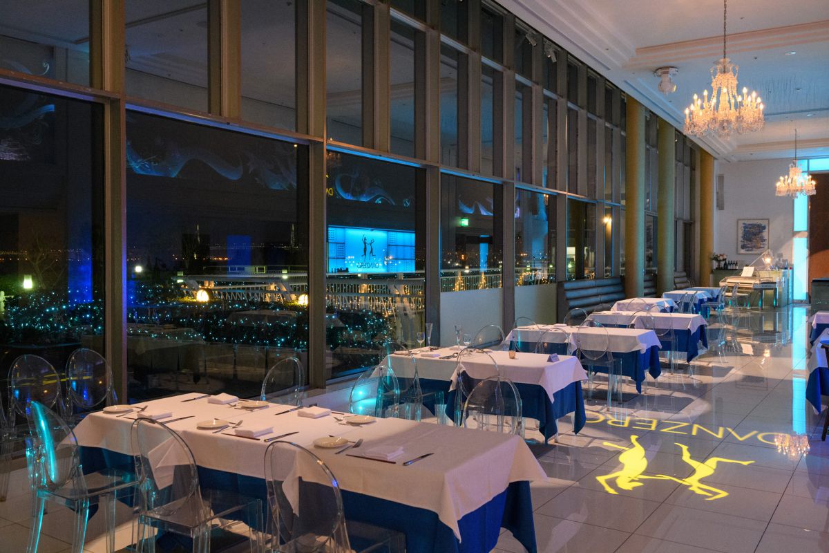 横浜・みなとみらいの本格フレンチレストラン。目の前には横浜港が広がる最高のロケーション。エレガントかつモダンな店内は、アクアブルーのライトが照らされた幻想的雰囲気。デートや女子会にもぴったりのお店です。