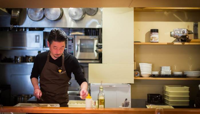 京都・祇園宮川町に佇むアットホームなビストロ。シェフは京都ホテルオークラで25年の経験を積んだ川野隆夫氏です。夫婦ふたりで営むアットホームなお店で、季節感のある絶品創作フレンチが楽しめます。