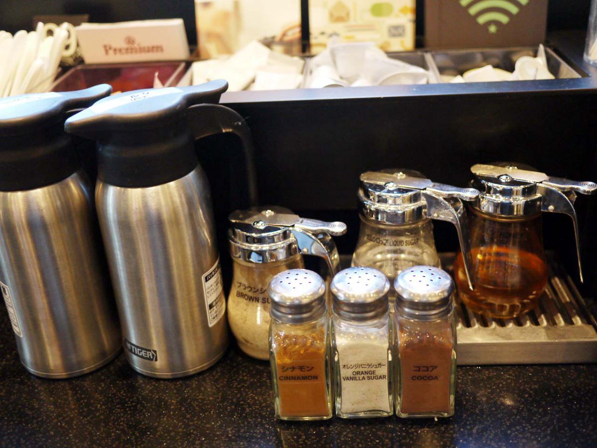 また、スターバックスには自由に利用できる“コンディメントバー”が設置されています。