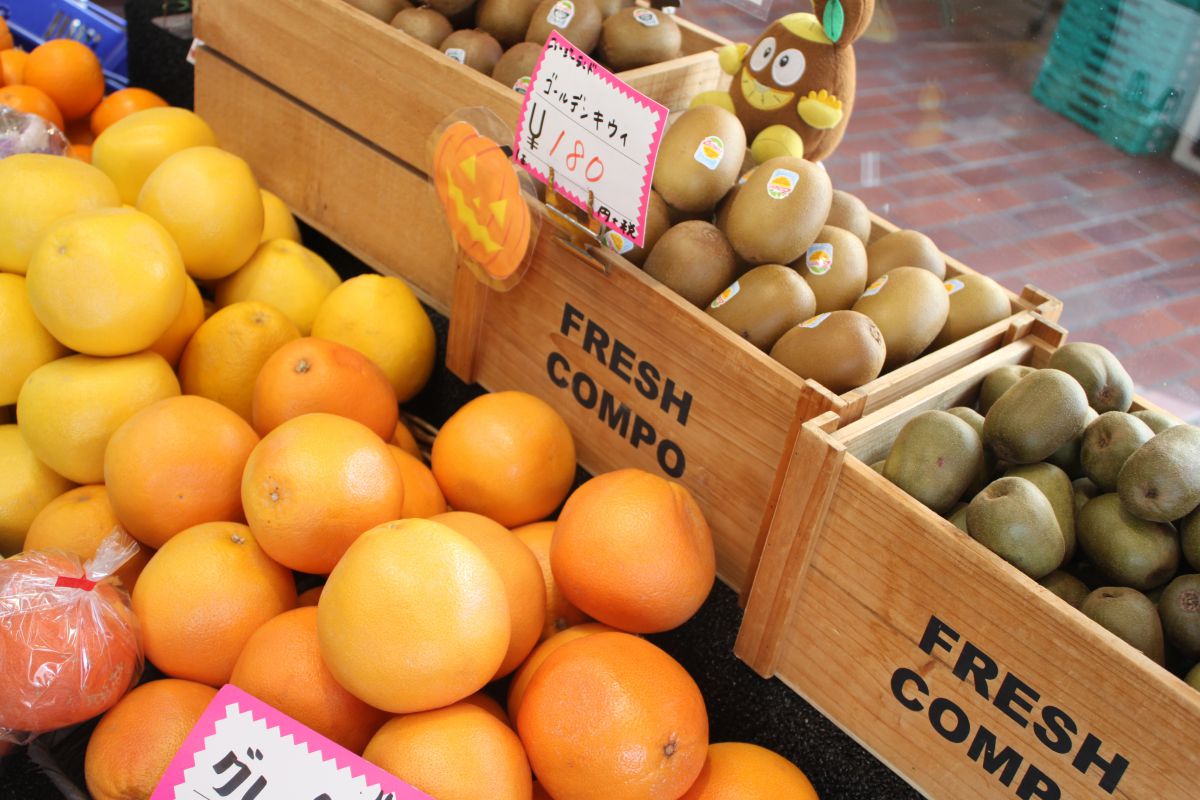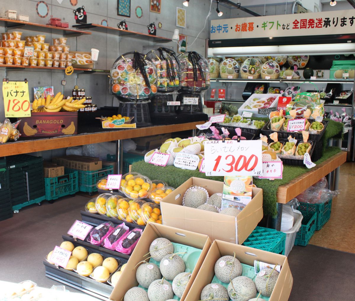カフェのすぐとなり、フルーツ専門店「果楽土(からっと)」には、毎朝市場で仕入れる新鮮な果物ガズラリ。2009年の創業以来、地元の常連さんを中心に多くのファンから親しまれています。