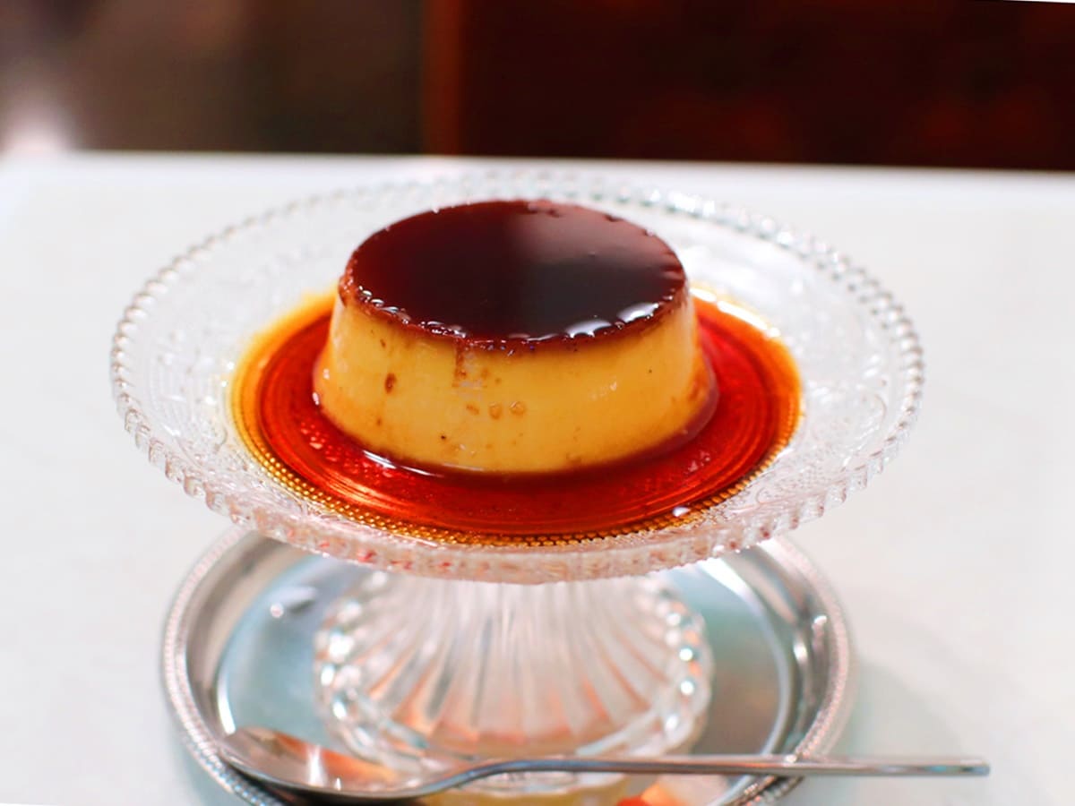 カスタードプリンはしっかりとした固さ。たまご本来のおいしさが伝わる味わいです。