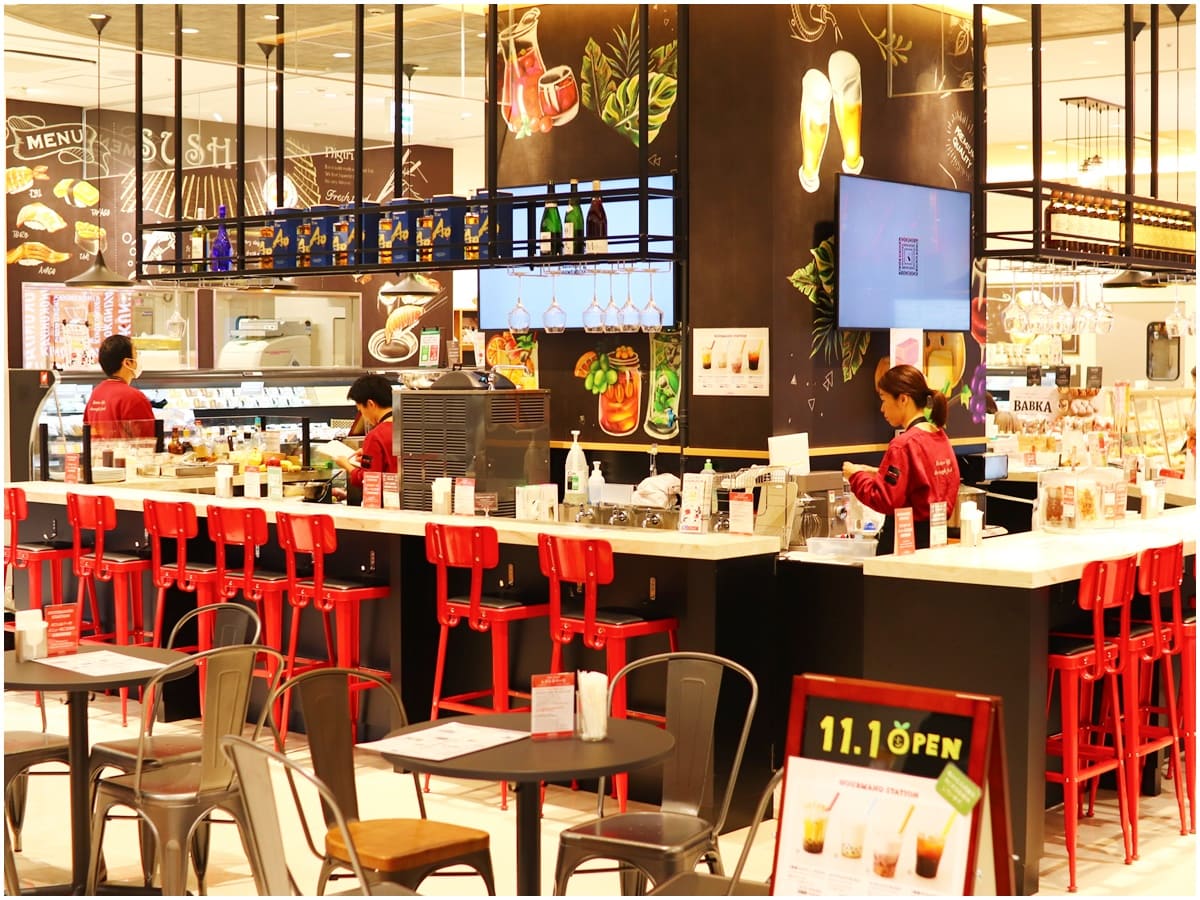 そして注目なのは、ベーカリーやスーパーだけでなく、紀ノ国屋初のカフェ&バー「Gourmand Station(グルマンステーション)」を併設していること。