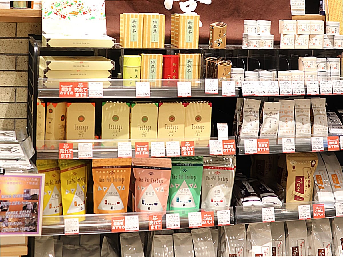 京都に本店をかまえる老舗日本茶専門店「一保堂茶舗」のお茶もたくさんの品ぞろえ。