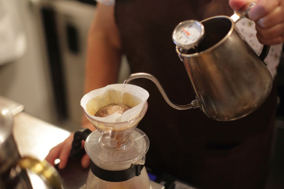 注文が入るごとにハンドドリップ。お湯は沸騰させないようにして、深い香りと味わいを生み出します。