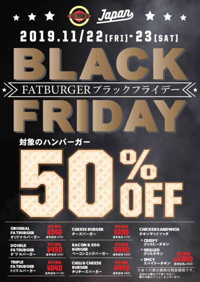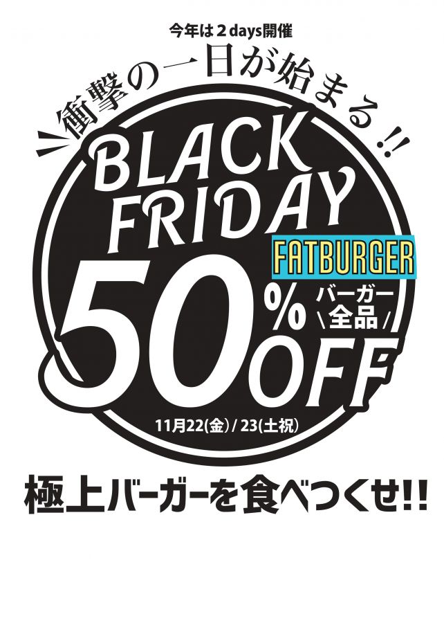 ■FATBURGER JAPAN 渋谷店 「ブラックフライデー」バーガー50%OFFイベント