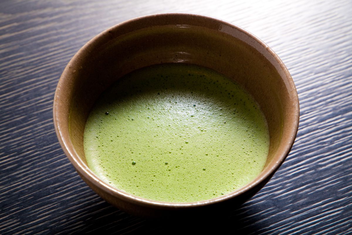 5種類の菓子には、すべてこちらのお茶席用の抹茶が使われています。一般的に抹茶には「うまみ」「渋み」「苦み」の3つが感じられるといわれますが、本当に上質な抹茶はうまみの中にほのかな渋みが感じられる繊細なもの。