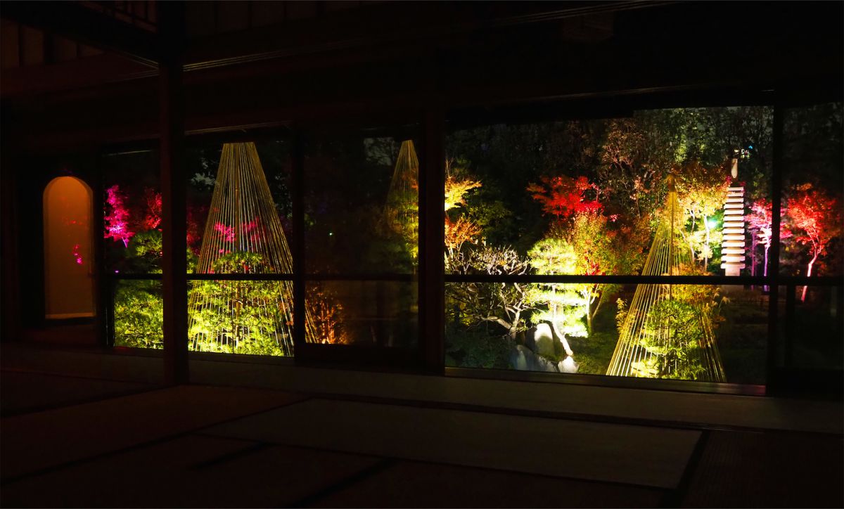 庭園内の茶室「赤鳥庵(せきちょうあん)」では夜を楽しむイベントも