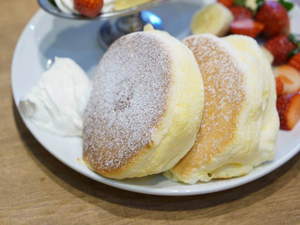 パンケーキは数種類の粉をブレンドしたものを使用した、ふわふわのスフレパンケーキ。