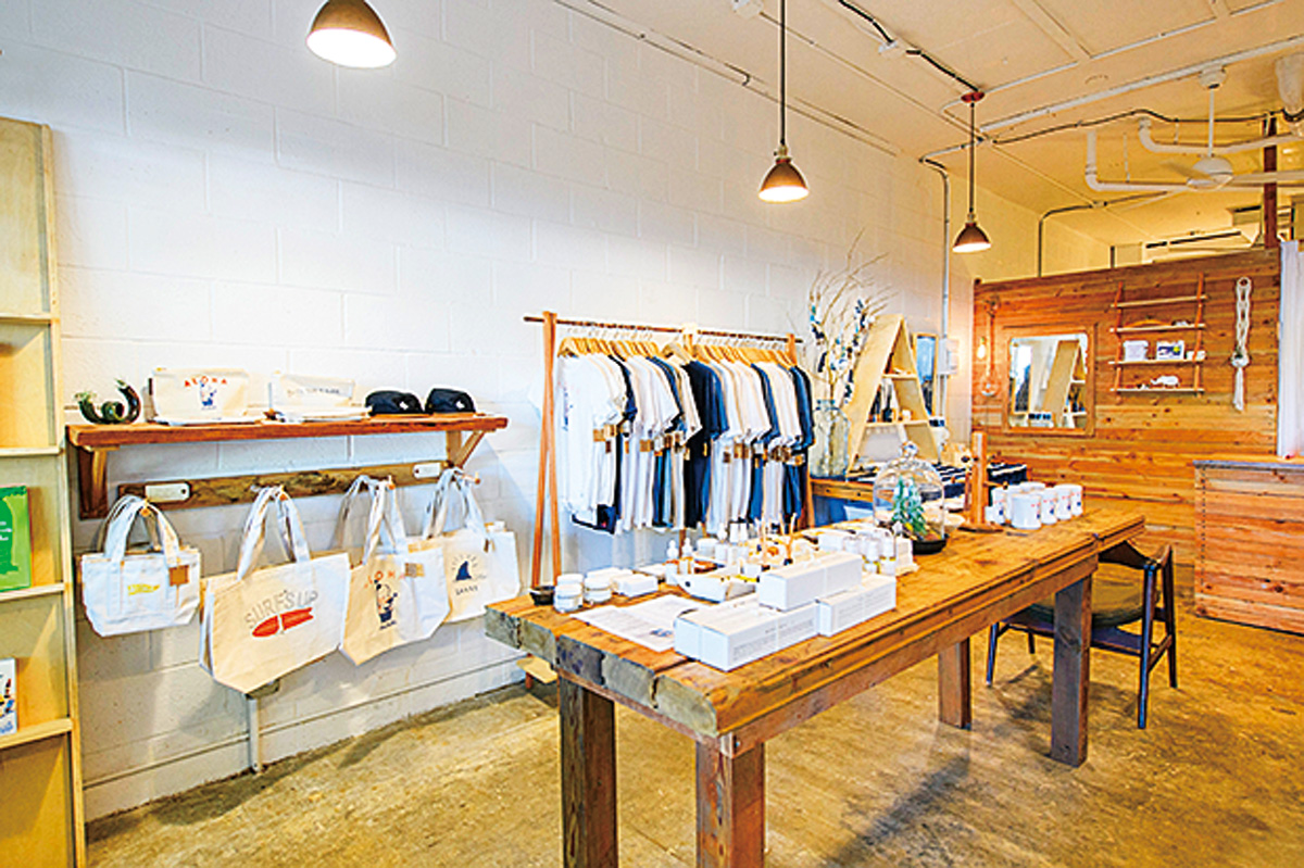 カイルアの人気レディースショップとメンズショップが融合した2号店。オリジナルグッズのほか、話題のブランドのセレクト品も取り扱い、店内にはテイクアウト専用のカフェも併設されています。サーフジャック・ホテルとのコラボ品は、ここでしか購入できないレアなアイテム。
