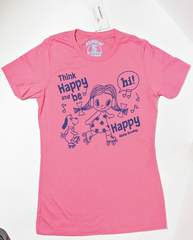 店のキャラクター、ハッピーちゃんがプリントされたTシャツは女子に人気です。$ 32