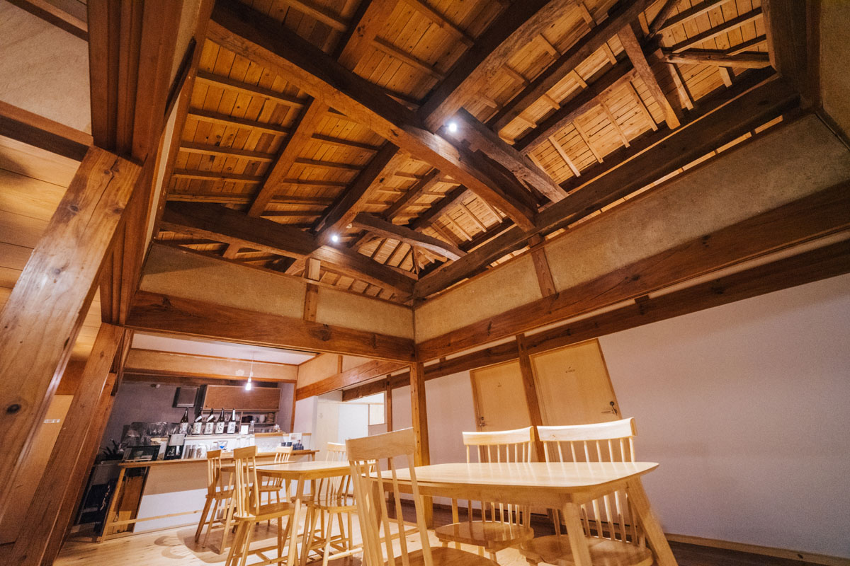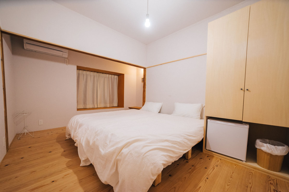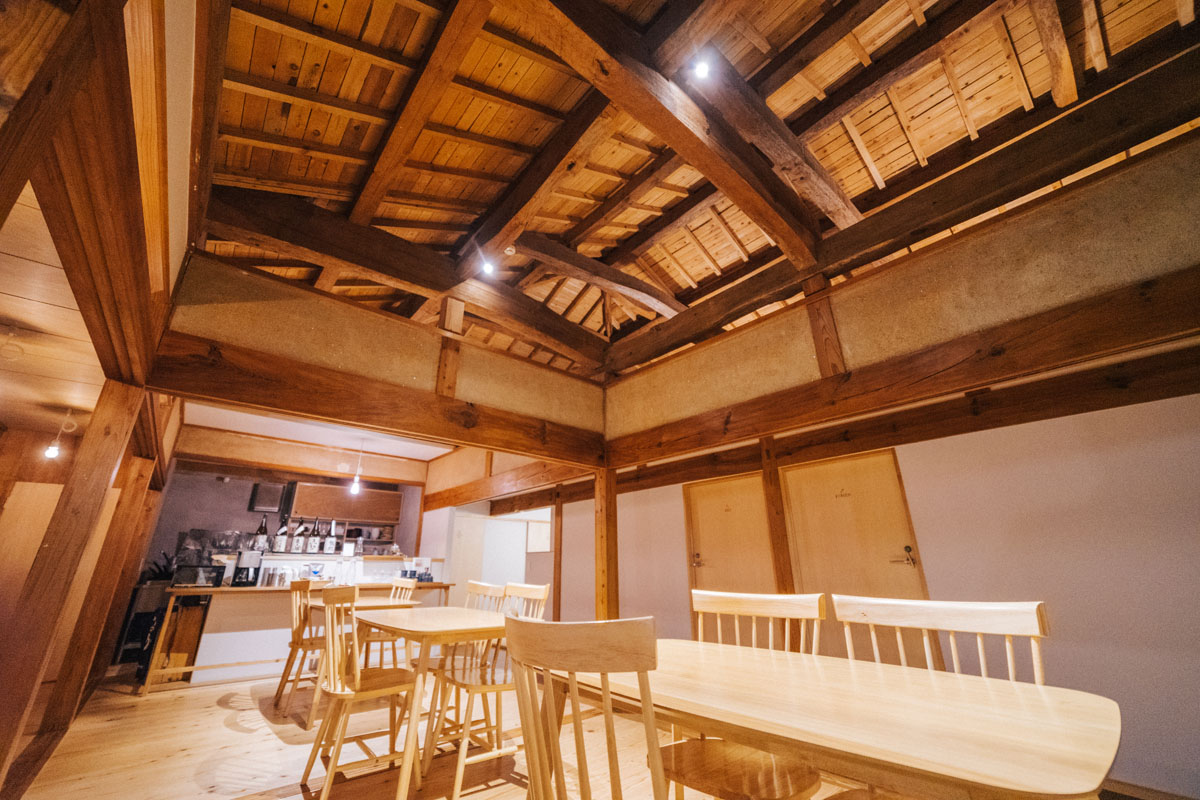 続いて、お宿。ここは釣り人に親しまれた木造平屋の船宿を移築して、2018年4月に開業したホステル。甑島出身の83歳の大工さんの協力を得ながら、なんとクギを1本も使わず、島の木材を活かした造りにしているのだとか。ただ新しいだけじゃない、もともとの良さを大切にしてなじませながら新しくするという哲学に納得。