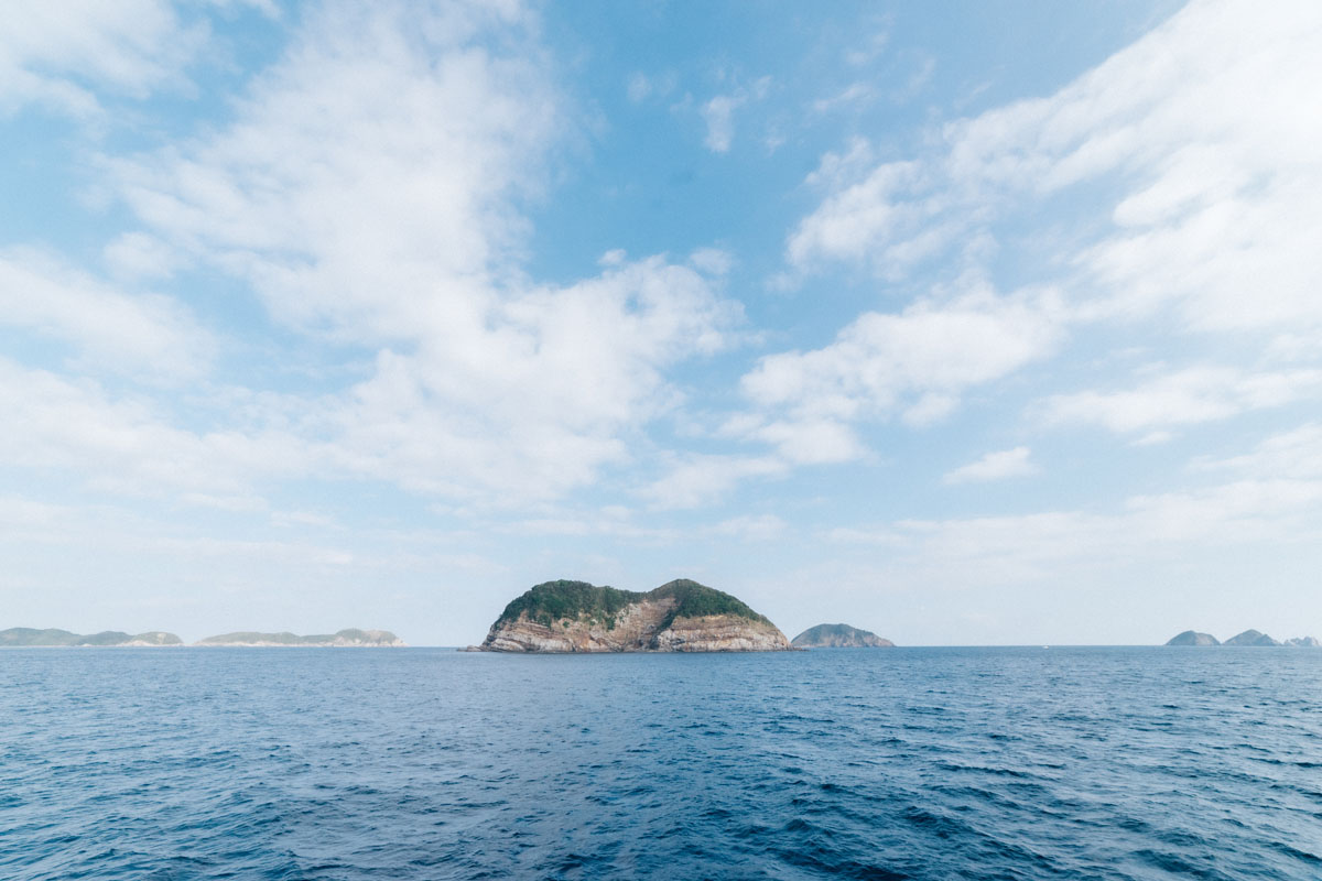まず甑島の基本的な情報のおさらいです。鹿児島県の西約30㎞、東シナ海の沖合に位置するこの島は、鹿児島県の川内港ターミナルから高速船甑島で約50分(1日2便)、もしくは串木野新港からフェリーで約75分(1日2便)という、なかなかの秘境。コバルトブルーの海や断崖などのワイルドな自然が残り、国定公園にも指定されている場所なので、ネイチャー派の方には超おすすめです。