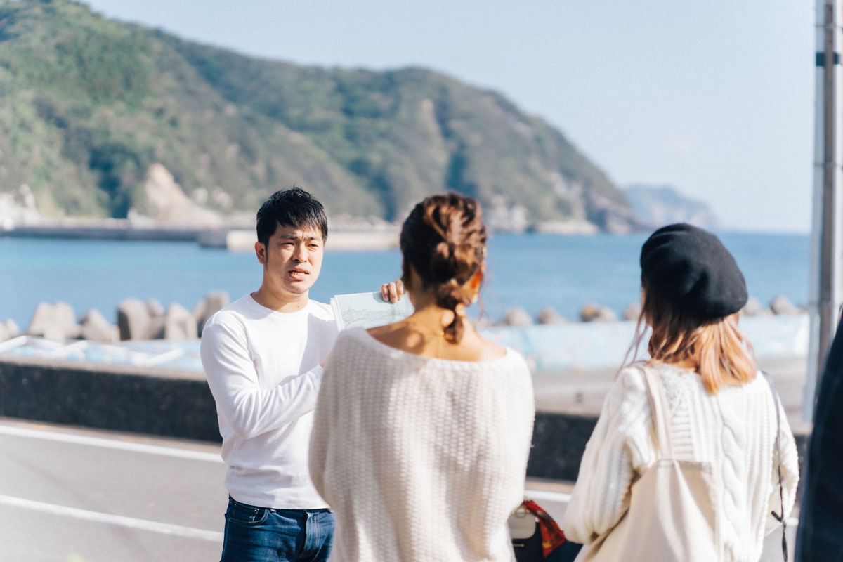 さて、島に到着して出迎えてくれたのは、「しまなびガイド」をしている山下賢太さん。山下さんは上甑島の出身で、京都の大学で環境デザインを学んだ経験を活かし、「故郷をもっと好きになりたくて」島へ戻られたんだそう。「しまなびガイド」として、あえて島内の旧所名跡を一切巡らず、日常の風景・建築を見たい人に人気のツアーを催行しているのです(1名3000円※2名より予約可)。