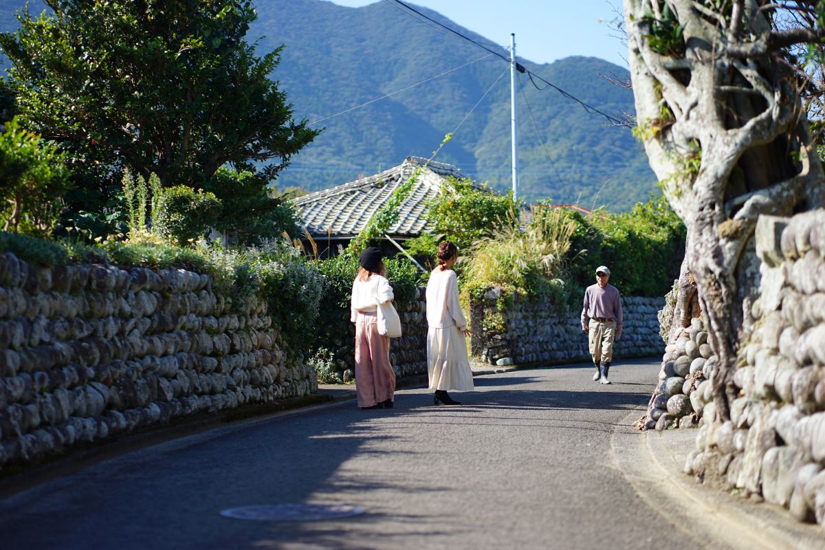 ツアー中は、地元の人に話しかけられることもしばしば。写真は上甑島の武家屋敷群を歩いて散策していた時のこと。島の人はシャイだけれど、一度話し始めると地元だけが知る情報を気さくに教えてくれるんです。町の人みんなが「しまなびガイド」、島の人との触れ合いもアクティビティのひとつなんですよね。観光地だけじゃない、日常の風景にこそ島の良さは宿っている!このツアーでそう確信しました。
