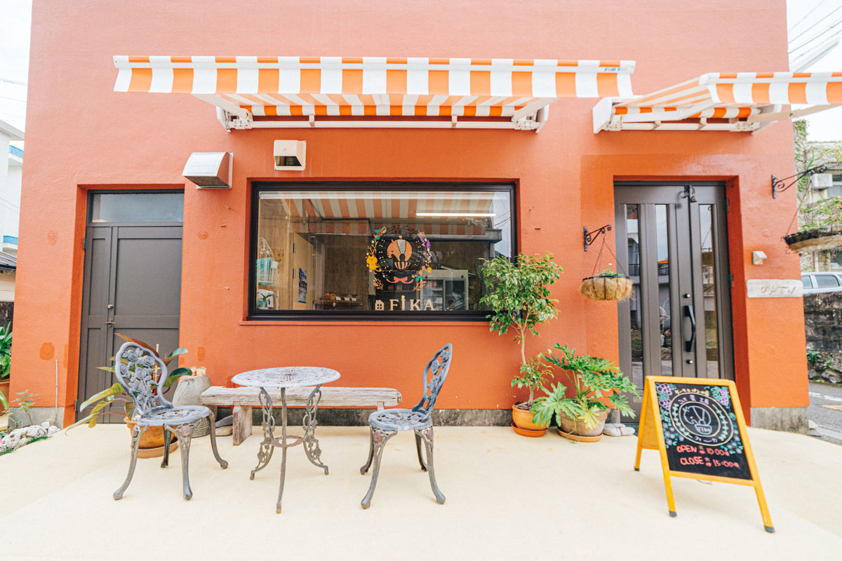 まだまだおしゃれなお店は続きます。こちらは2019年3月にオープンした街のスイーツ屋さん「ケーキとパンの店 こしき麦工房 フィーカ」。スウェーデン語の「ティータイム」という名にふさわしい、キュートな外観とほっとする焼きたてパンで地元の人にも人気のお店です。