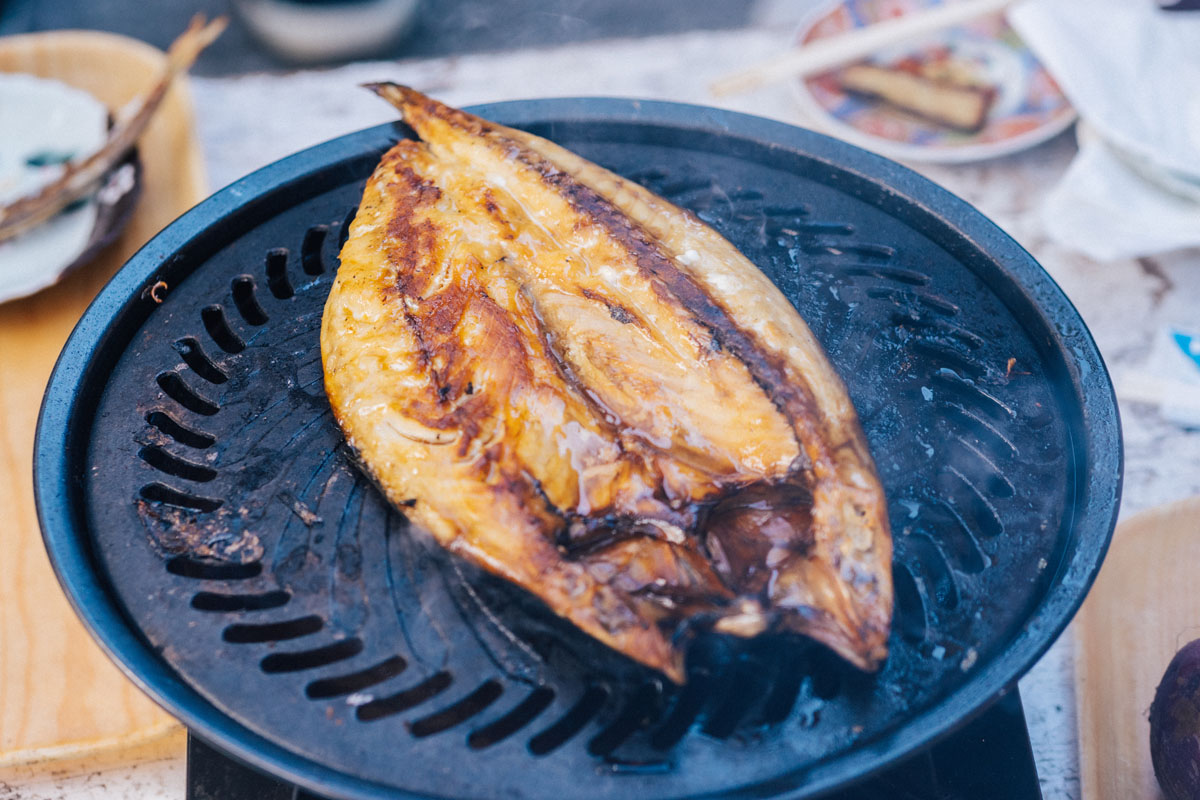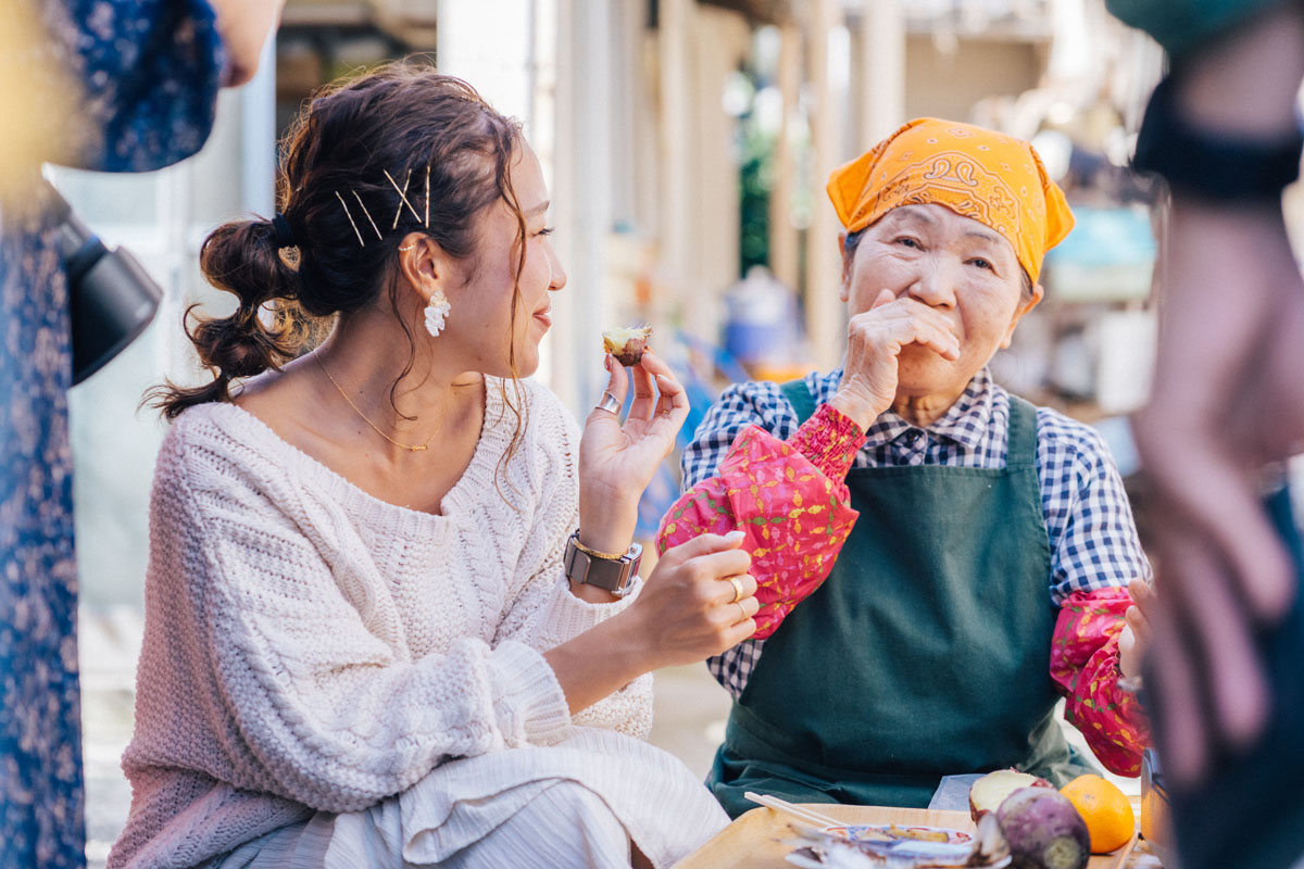 さらにこの干物、もちろん販売のみなのですが、運が良ければその場で焼いて味見させてくれることも!(お母さんでもおばちゃんでもなく、"おねえさん"と声をかけると確率がアップする…かもしれません)。おまけに唐芋のサービスまで。お魚と唐芋、意外な組み合わせのようですが、これがおいしい!!