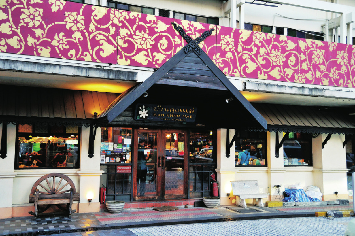 若者の街サイアム・スクエアで伝統的なタイ料理が味わえる貴重な店。「お母さんの家」という店名どおり、家庭料理をベースとしたメニューが多く、観光客のハートを捕えて離しません。人気のトムヤムクンTom Yam Koong B200。ライムの酸味とレモングラスの香りが印象的。ほどよい辛さがバランスよく味を引き締めます。