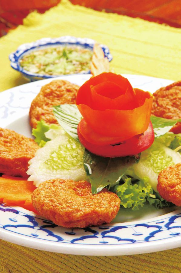 魚のすり身揚げFish Cake B150はタイ語で「トートマンプラ―」という名物料理。薩摩揚げに似ていますが、唐辛子入りでスパイシー!