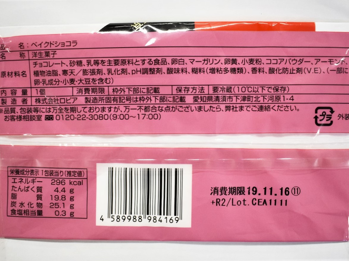 赤・金のパッケージから高級感を漂わせている同商品。袋を開けると、細長いアルミカップに入ったベイクドショコラが現れます。表面がふんわり仕上がっていて、味も濃厚そう。ショコラだけでなく、小粒のアーモンドがたっぷり入っているのも嬉しいポイントです。食感を想像するだけでワクワクしてきました。ちなみに、カロリーはひとつあたり296Kcalほど。