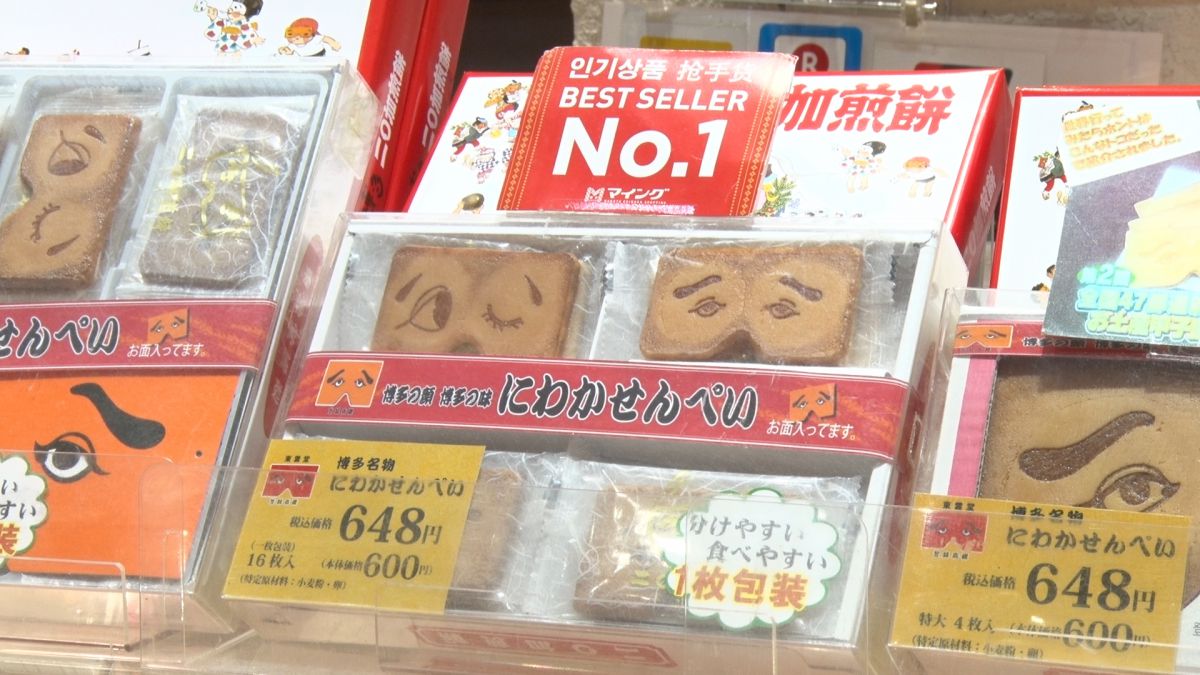 福岡で知らない人はいないというほどお馴染みの二○加煎餅。サクサクとした歯ざわりと、卵の風味が好評!商品を買うとついてくる煎餅を型どったユーモアあふれるお面はインスタ映えにもお土産話にも◎。メガネをモチーフにしたブラック二○加煎餅も黒糖風味がほのかに漂う人気商品です。