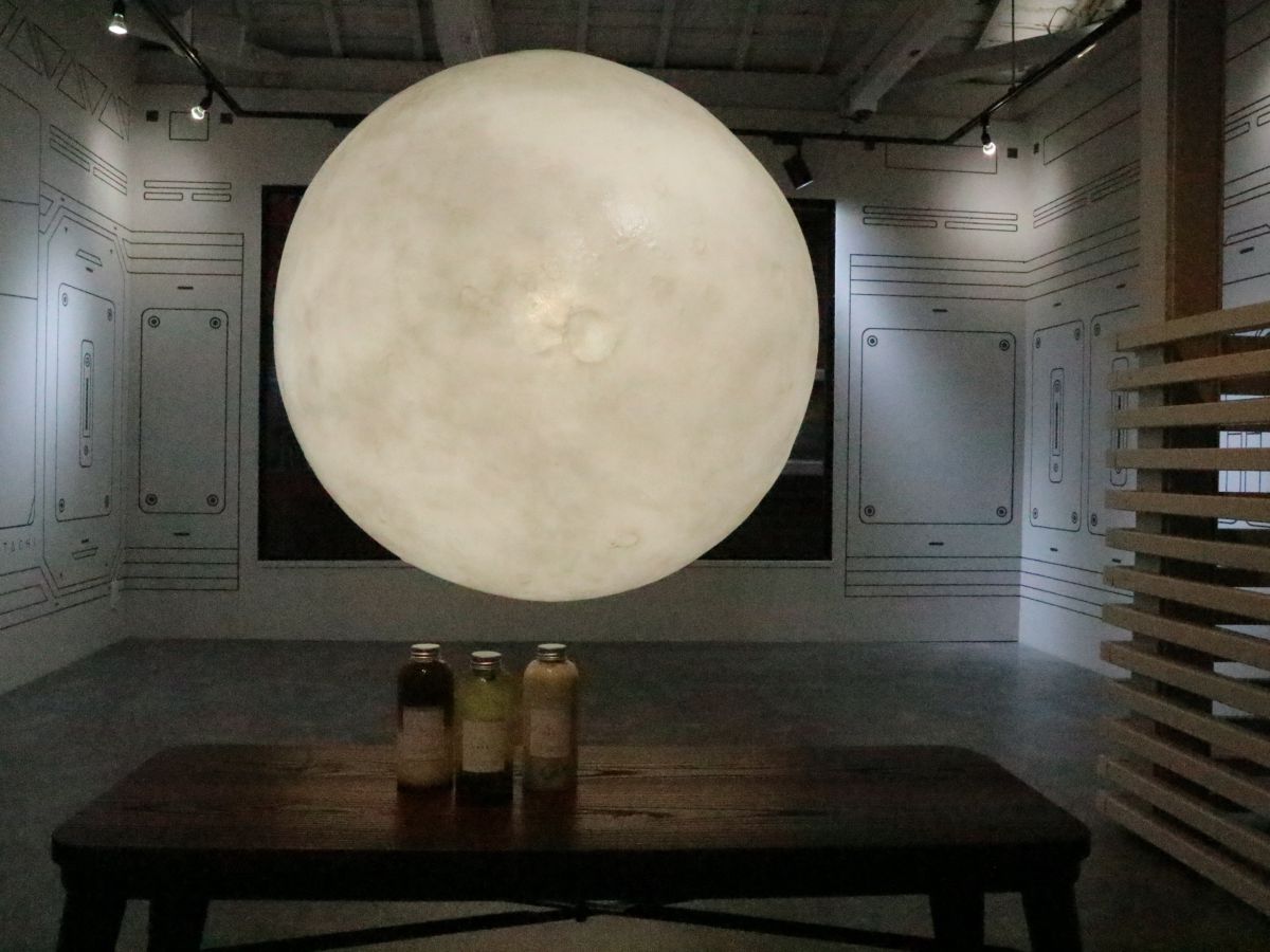 2階には、光り輝く大きなお月様が!お店のアイコンとして、絶大な存在感を放っています。“宇宙船”をイメージした店内に、大きな月が光り、みょうに落ち着く雰囲気は、まさに異空間。台湾茶片手に友達と夢を語ったり、自分の人生や進路に考えを巡らせたり、思い思いの時間を過ごせます。