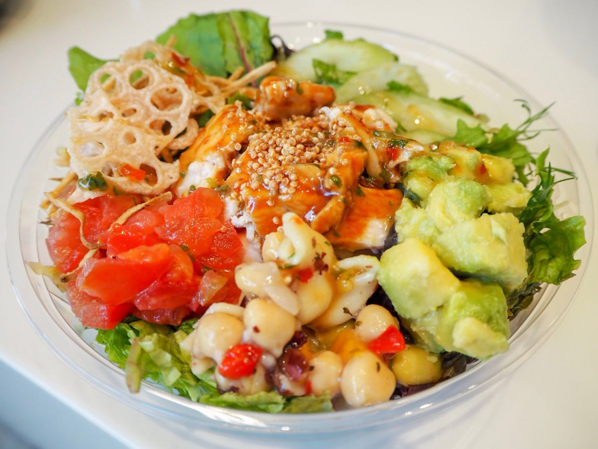 こちらは、ベースに「3種豆のイタリアンマリネ」「フレッシュトマト」「アボカド」「フライドごぼう&レンコン」「キヌア」をトッピングしたもの。