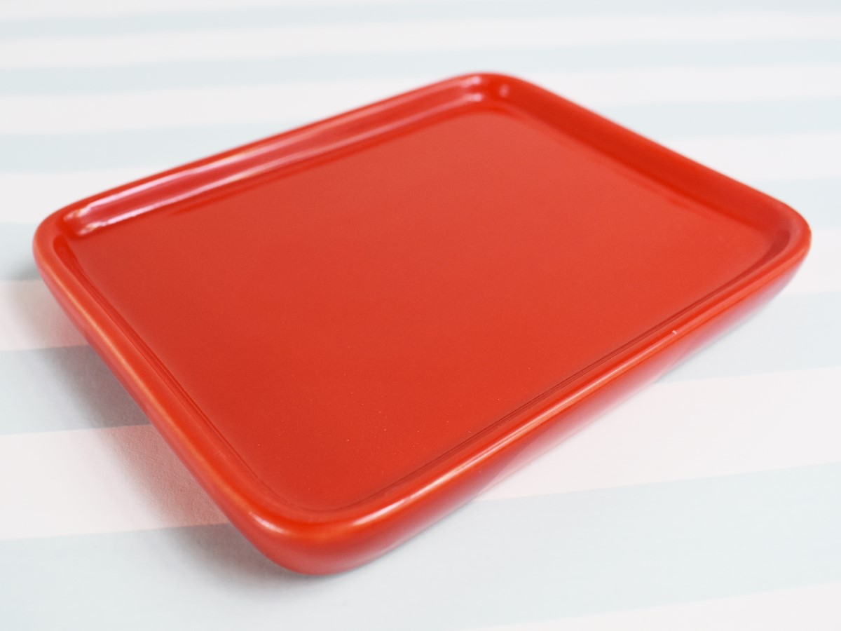 続いて赤い台に猫の陶器を置いてみましょう。置いてみたところ、猫が「ちょこん」と座布団に座っているような見た目に。台には枠がついており、陶器がピッタリとフィット。ずっしりとした台は安定感バツグンのため、何かの拍子に陶器だけが落ちてしまう心配はなさそう。