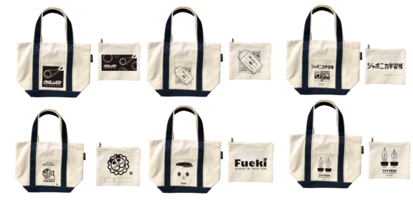 “レトロな文具が、カタチを変えて復刻する”がコンセプトの「Old Resta」トートバッグ(各1738円)。大人気の全14柄はもちろん、先行発売となる新しい柄もお披露目されます。