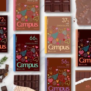 チョコレート風のパッケージに胸キュン必至のキャンパスノート。カカオの配合率をイメージした数字によって表紙の色味が変わる5冊セットです。表紙にちりばめられたカラフルなハートが可愛い…!