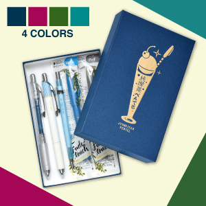 とうとう文房具もバイキングの時代に。ぺんてるのオリジナルポストカード付き文具セットを買うと、「純喫茶ぺんてるボックス」がもらえます。ソフトクリームのロゴが箔押しされていておしゃれ。オリジナルポストカード、文具セット、ボックスの組み合わせは80通り。ゆっくり時間をかけて選びたいですね。