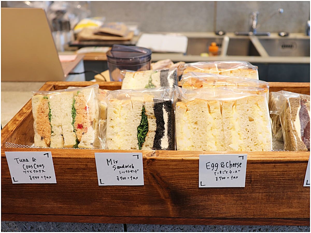 カウンターには、こだわりの食パン「プティシリーズ」などで作られる大人気のサンドイッチが5種類。