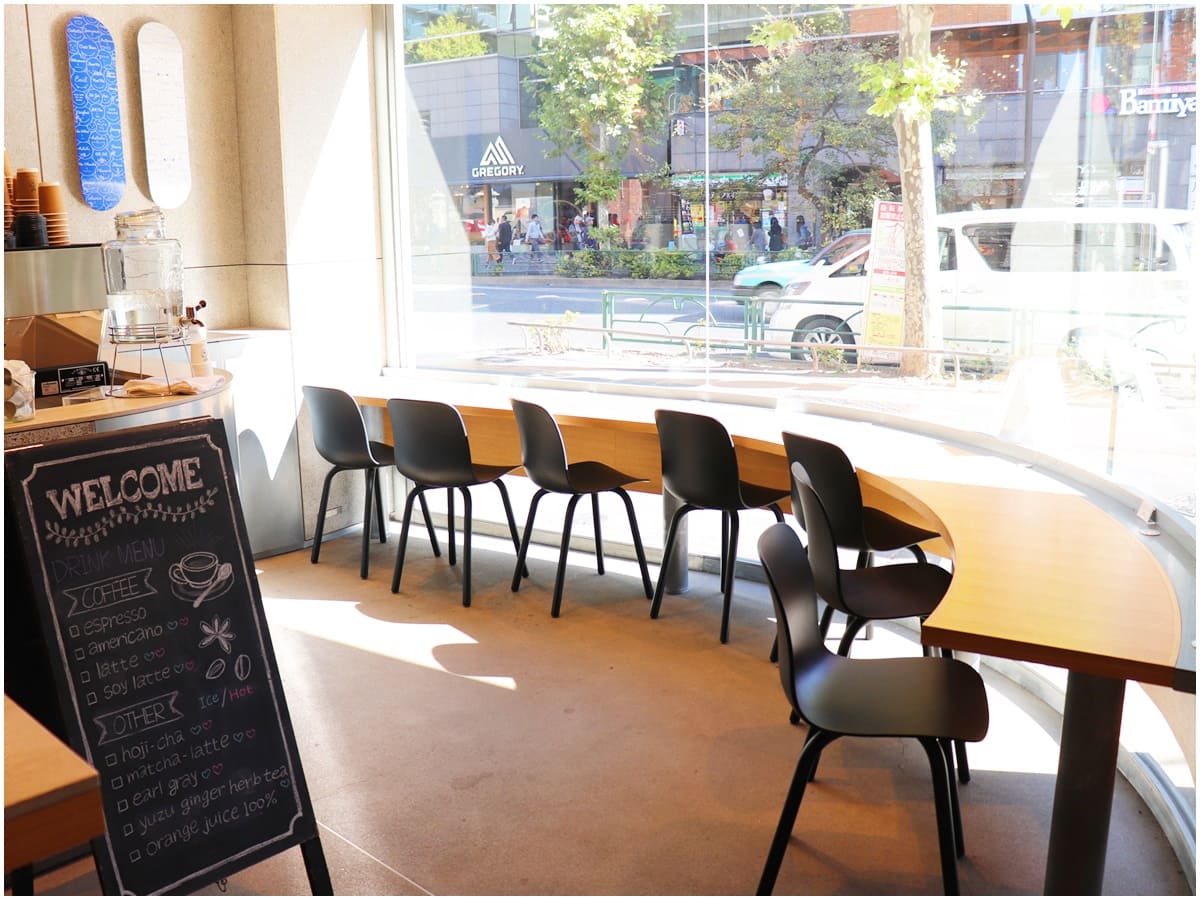 店内は日差しが入ってとっても明るく、ゆったりした雰囲気。こちらは椅子が高めのカウンター席。
