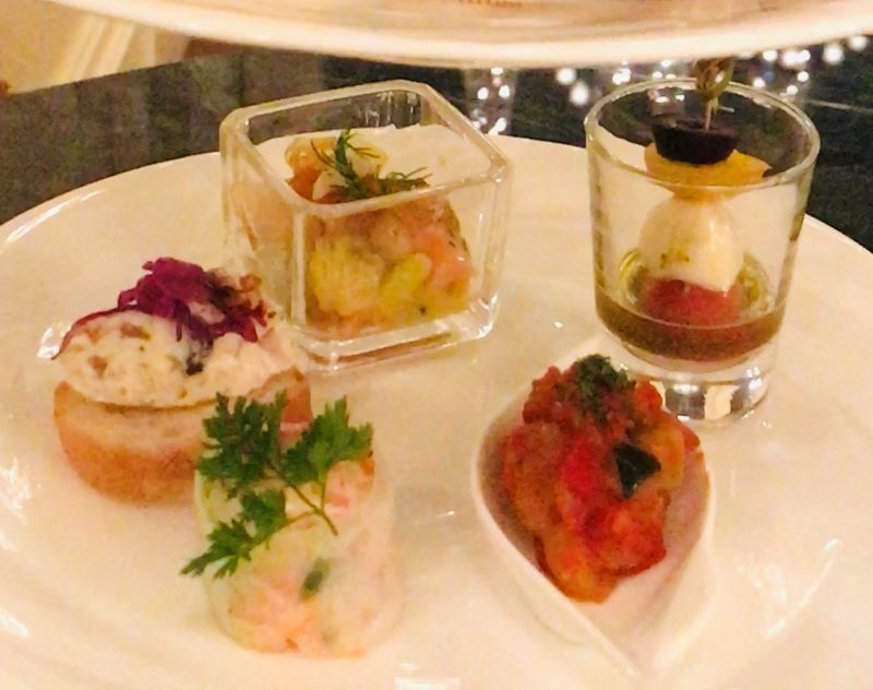 ティースタンドで提供されるサンドウィッチ&オードブルは色鮮やか。