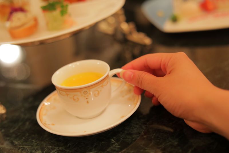 ドリーマーズ・ラウンジのアフタヌーンティーにはスープも付きます。今回のスープは「バターナッツのポタージュ」。かぼちゃの一種、バターナッツを使ったスープはクリーミーでスウィート。できないとわかっていても、おかわりしたくなるおいしさ!