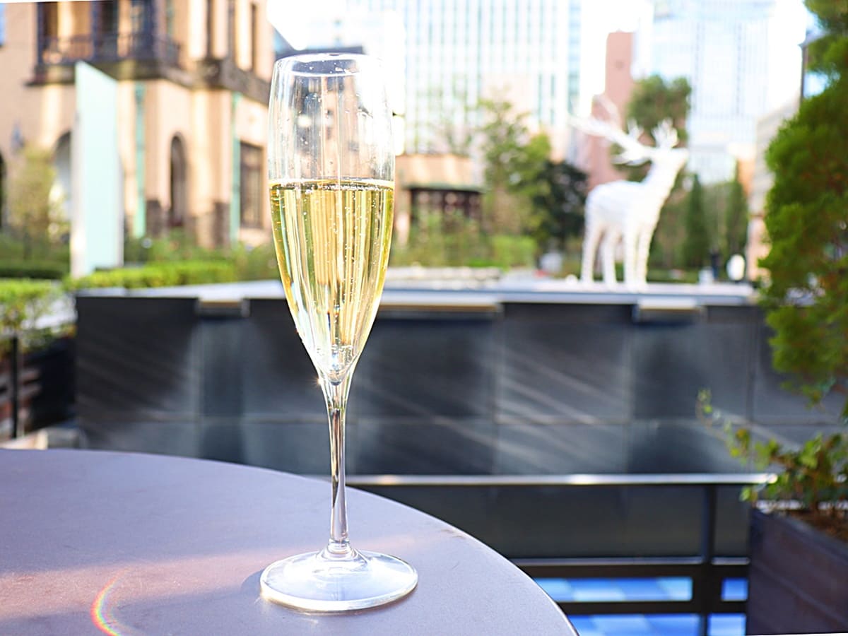 今回は、スパークリングワインをお願いしてテラスでいただきました。