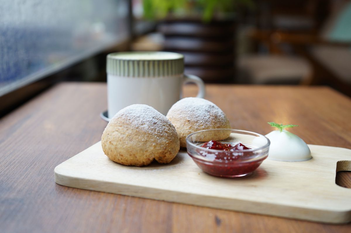 おやつはもちろん、ちょっと小腹が空いたときにもぴったりのスコーンは香ばしい全粒粉入り。
