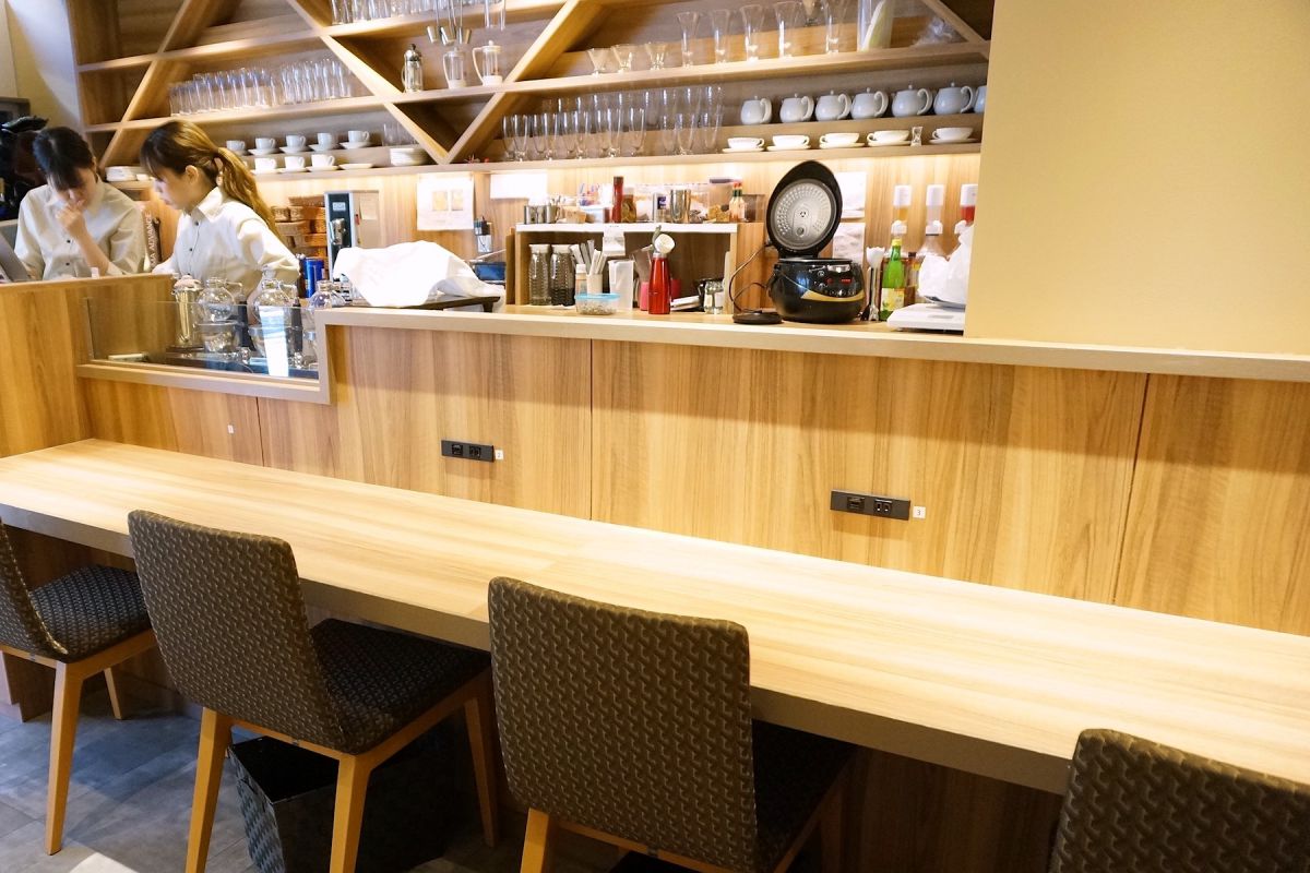 お店に入ると最初に見えるのは、電源・USBコンセントがついたカウンター席。