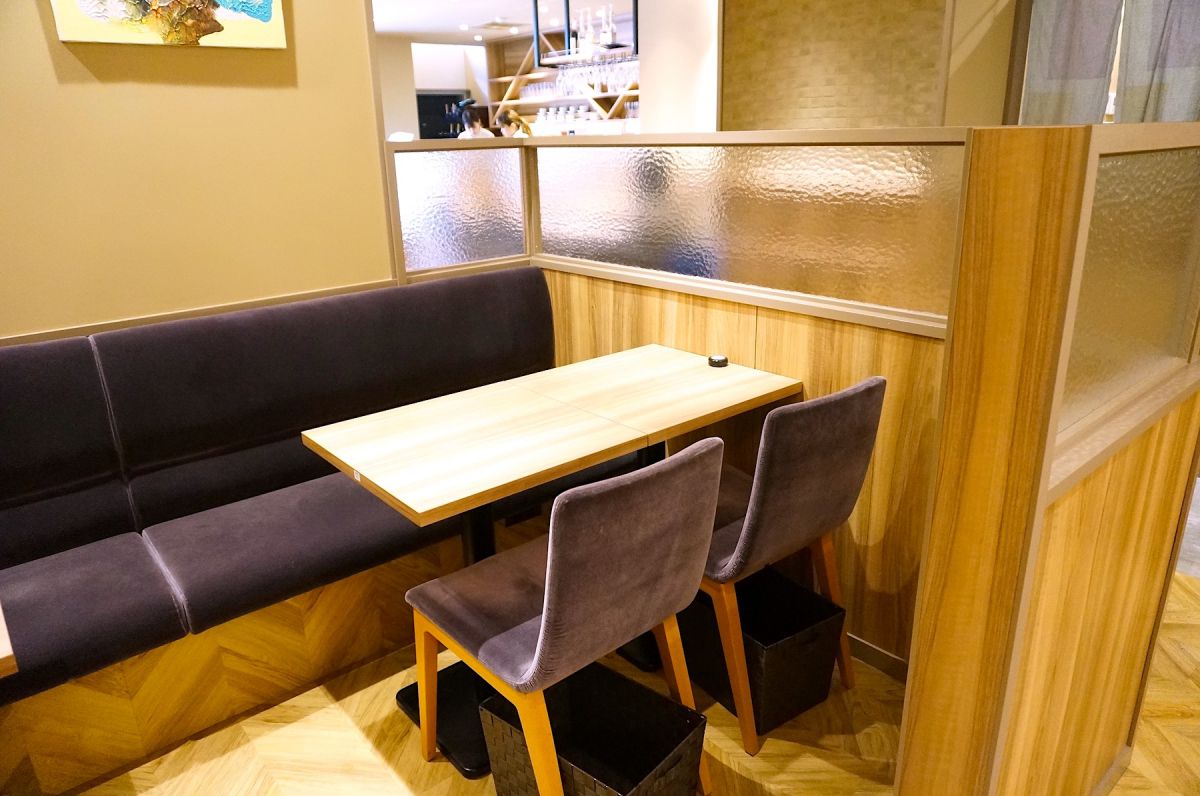 反対側には仕切りがついた、半個室のようなセミブース席もご用意。お子様連れや友人グループのカフェ・ランチはもちろん、ビジネスの打ち合わせにもよさそう。