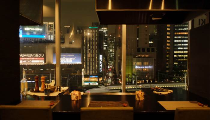 お店はJR新橋駅から徒歩2分、銀座の一等地に建つビルの6階にあります。窓側の席からは新幹線が見えて大興奮!カウンター席ではシェフによる豪快なライブパフォーマンスが見られます。美味しい料理とワクワクする仕掛けがいっぱいで、盛り上がること間違いなし!デートや女子会にもおすすめのレストランです。
