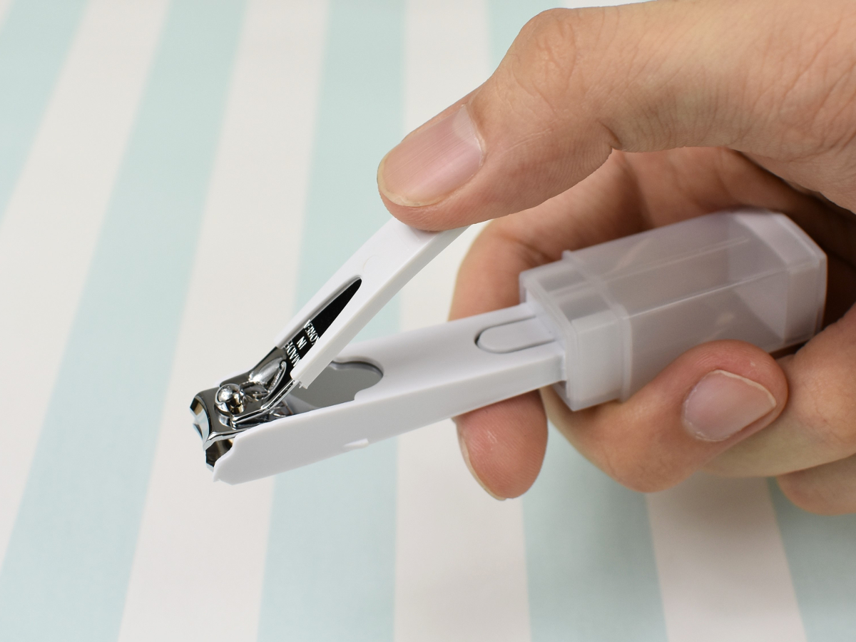 乳白色と透明なケースの中に爪切りが入っている同商品。ケースのサイズは約2(幅)×7(縦)×1.7cm(高さ)と、とてもコンパクトな作りになっています。片手に収まる大きさなので、化粧ポーチや鞄の内ポケットなどに入れて持ち運べそう。白を基調とした清潔感に溢れたデザインは、男性女性どちらでも使えそうなところも魅力的です。家庭に1つ、家族共用の爪切りとして置いておくのもいいかもしれません。