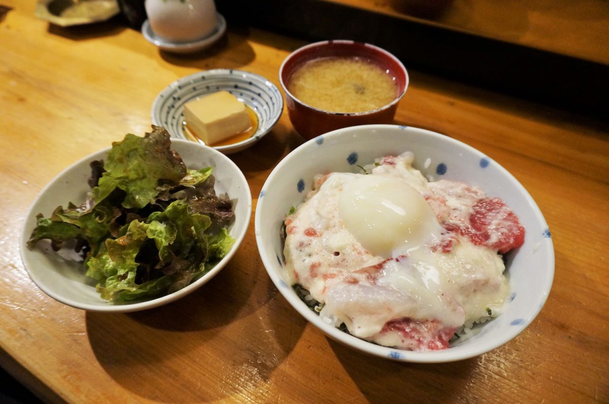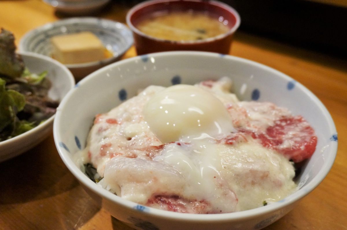 ・「海鮮塩ユッケ丼(刺身・とろろ・塩・ゴマ油・温泉卵)」